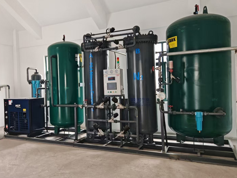 制氮機(jī)是與制氮機(jī)都是根據(jù)變壓吸附原理,采用高品質(zhì)的碳分子篩作為吸附劑,在一定的壓力下,從空氣中制取氮?dú)?。?jīng)過(guò)純化干燥的壓縮空氣,在吸附器中進(jìn)行加壓吸附、減壓脫附。由于空氣動(dòng)力學(xué)效應(yīng),氧在碳分子篩微孔中擴(kuò)散速率遠(yuǎn)大于氮,氧被碳分子篩優(yōu)先吸附,氮在氣相中被富集起來(lái),形成成品氮?dú)狻H缓蠼?jīng)減壓至常壓,吸附劑脫附所吸附的氧氣等雜質(zhì),實(shí)現(xiàn)再生。
